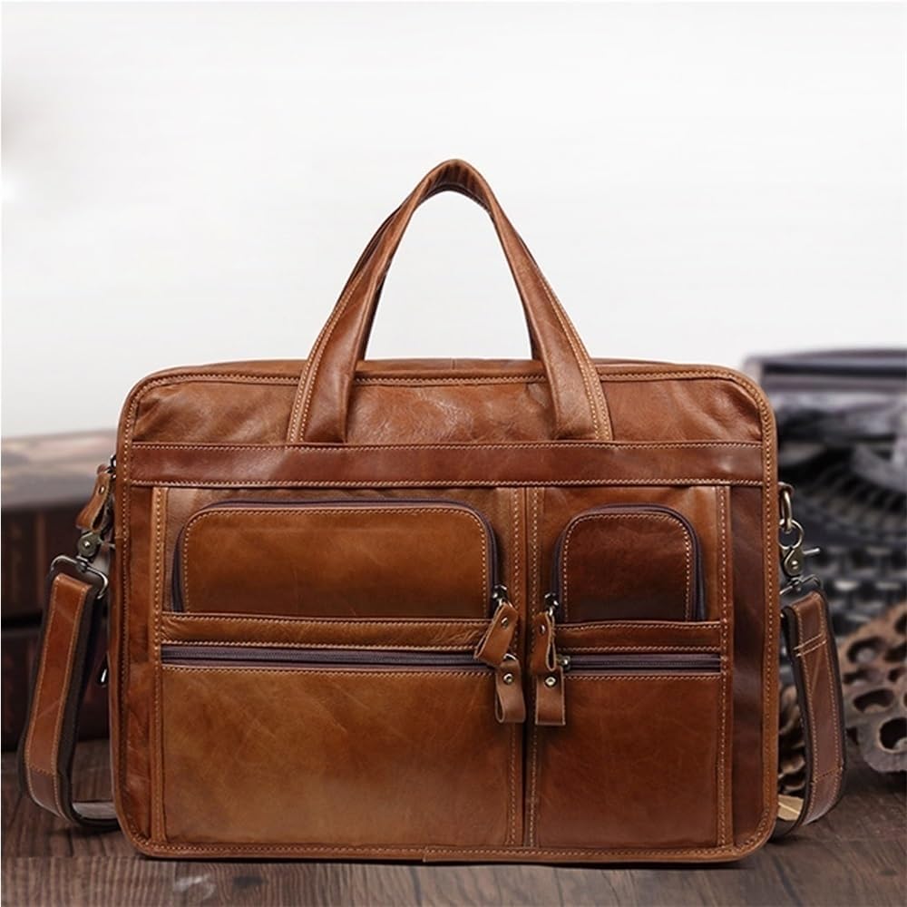 Waterproof Retro Leather Briefcase 15.6 Inch Laptop Bag for Men Business Travel Vacation Commuter Design