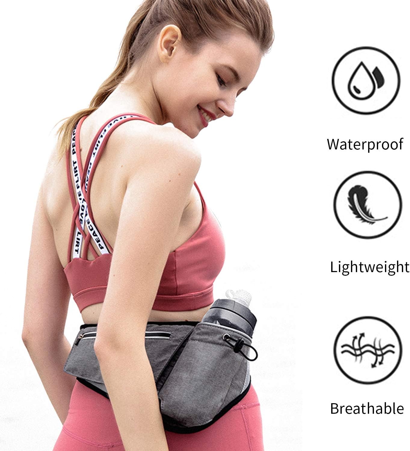 WENKA Unisex Waist Pack Sport Fanny Pack with Water Bottle Holder Adjustable Belt Pouch Boy Girl Teens Bum Bag Chest Sling Bag for Hiking Cycling Camping Marathon Travel Waterproof Nylon Black Double