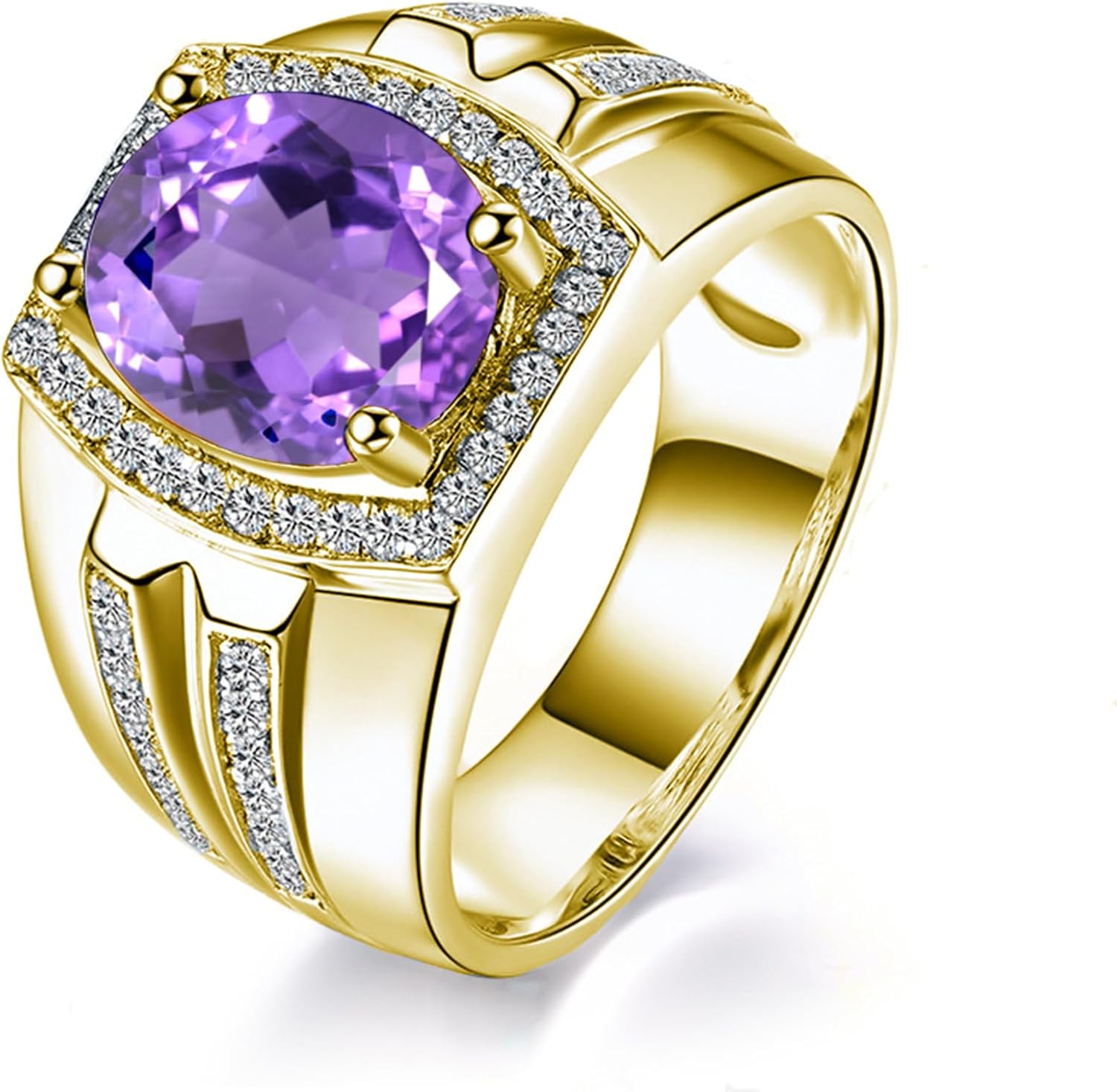 WSX Real Gold 10/14/18K Oval Cut Gemstone Men’s Rings,Anniversary Wedding Band Ring for Valentine’s Day Father’s Day Gift For Him/Boyfriend/Husband