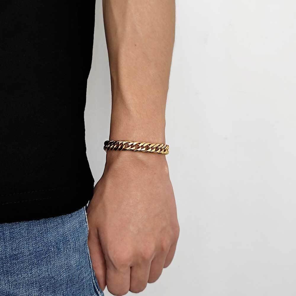 YONGBEI Solid 18K Gold Bracelet for Men and Women Hip Hop Cuban Bracelet Birthday/Valentine’s Day/Christmas Best Gift, Mesh Bracelet with Gift Box Packaging