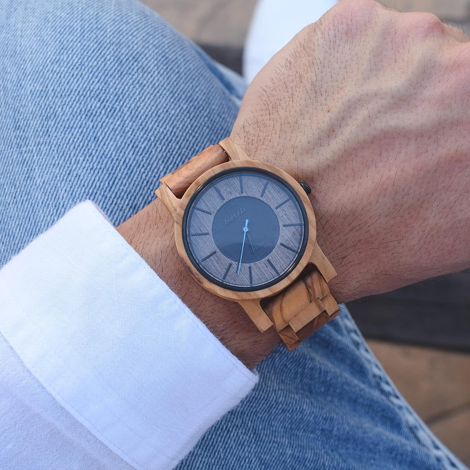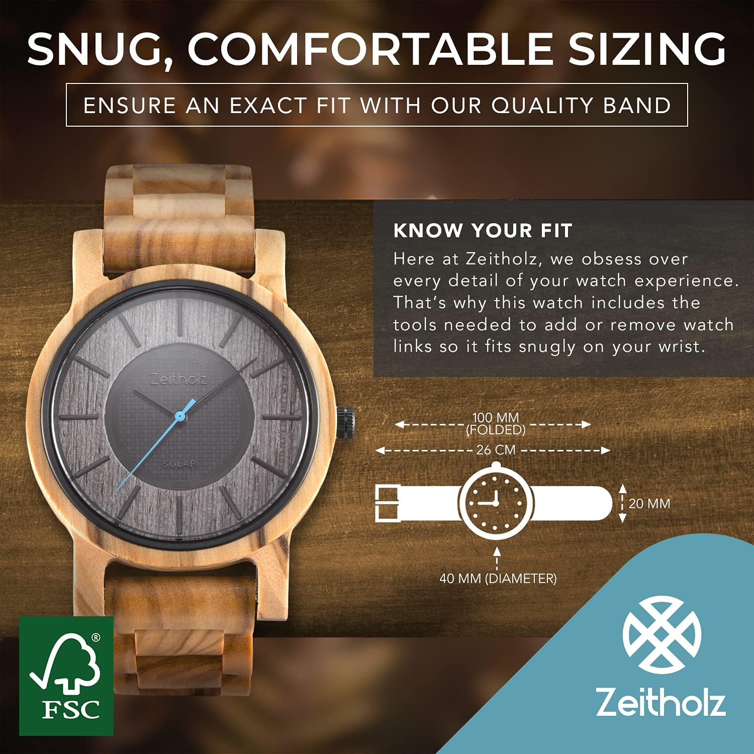 ZEITHOLZ Wood Watches for Men, Solar Watch, Gifts, Analog Watch, Sonnenberg Collection 40mm, 100% Natural Wood with Japanese Quartz Movement. (Olive)