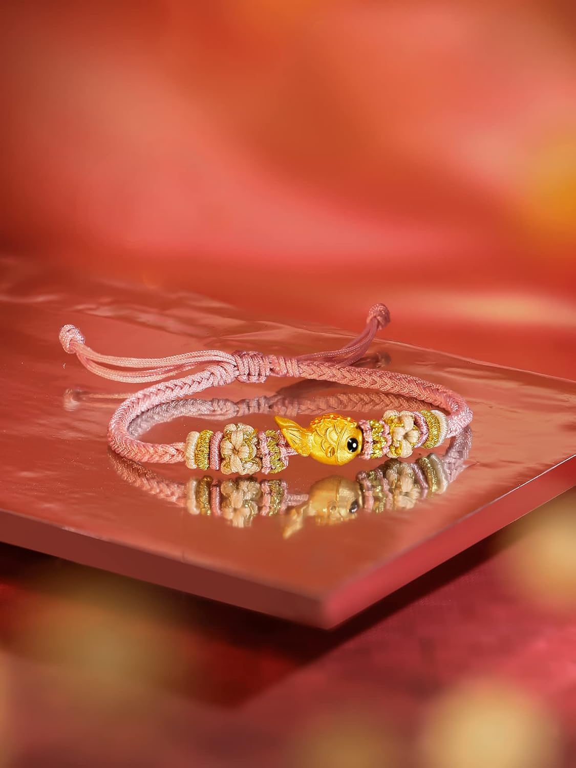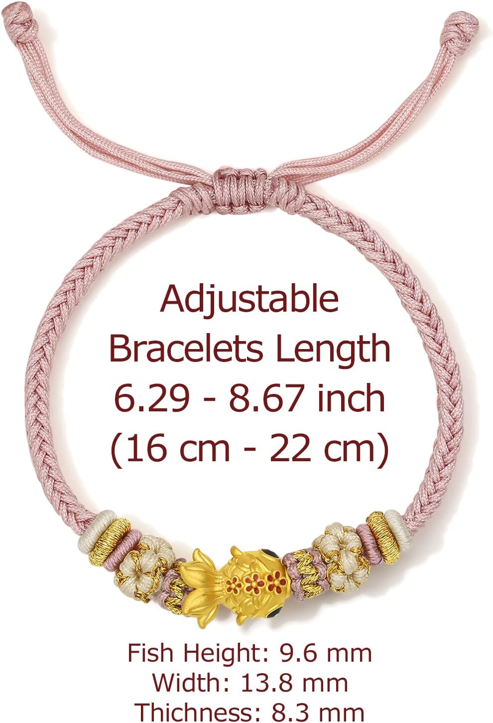 ZHOU LIU FU 24K Solid Gold Bracelet Luck Fish Real Gold Charm Bracelet Adjustable Jewelry Braided Bracelet for Women Girlfriend